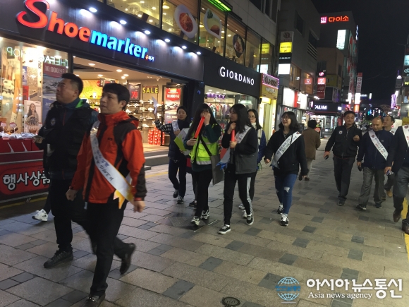 충남 아산경찰서 12일 온양온천역과 신용화동 일원에서 수능당일 청소년 선도·보호를 위한 합동 순찰을 실시했다.(사진제공=아산경찰서) 충남 아산경찰서(서장 신주현)는 12일 온양온천역과 신용화동 일원에서 아산서 경찰관 청소년지도위원회 위... 2015-11-13