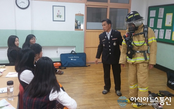 12일 매전중학교를 방문한 경산소방서 직원들이 학생 20명을 대상으로 미래소방관 체험교실을 운영하고 있다.(사진제공=경산소방서) 경북 경산소방서(서장 이구백)는 12일 매전중학교를 방문해 학생 20명을 대상으로 미래소방관 체험교실을 운영했다. ... 2015-11-13