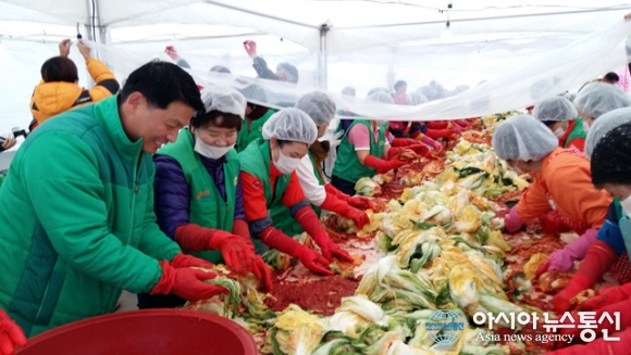 13일 공주시 백제체육관에서 KT&G제조본부와 공주시자원봉사센터는 어려운 이웃돕기 김장나눔 행사를 가졌다.(사진제공=공주시청) KT&G제조본부와 공주시자원봉사센터가 13일 지역의 어려운 이웃을 돕기 위한 사랑의 김장나누기 행사를 개최했다.... 2015-11-13