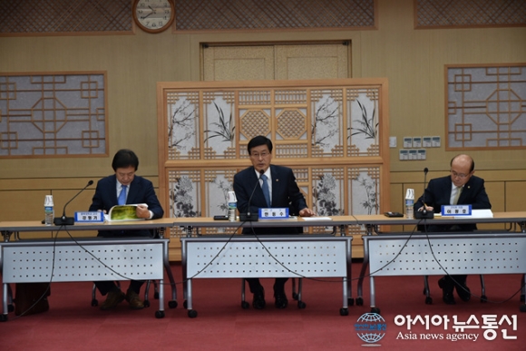 13일 오전 한동수 군수(가운데)가 회의을 주재 하고 있다.(사진제공=청송군청) 경북 청송군(군수 한동수)은 13일 군청 제2회의실에서 군정 미래발전 경영진단 연구용역 착수보고회를 가졌다. 군이 추진하는 경영진단은 군의 비전, 정책, 조직 등을 대상... 2015-11-13