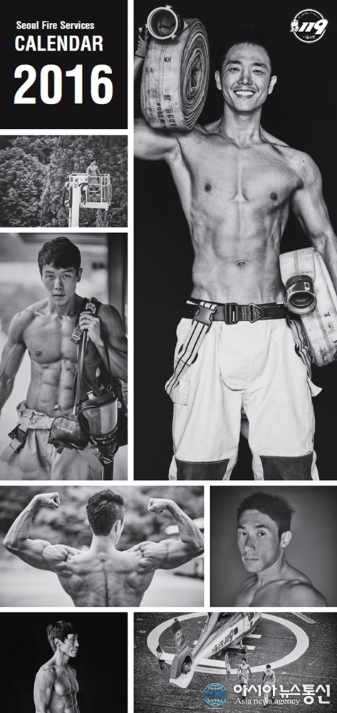 2016년 몸짱소방관 달력 표지.(사진제공=서울시) 서울시가 화상으로 실의에 빠진 저소득계층에 꿈과 희망을 찾아주고, 재활치료비를 지원하기 위해 몸짱소방관 달력을 제작했다. 화재현장에서 시민의 생명을 구하는 서울시 몸짱소방관 14명이 이번에는 ... 2015-11-13