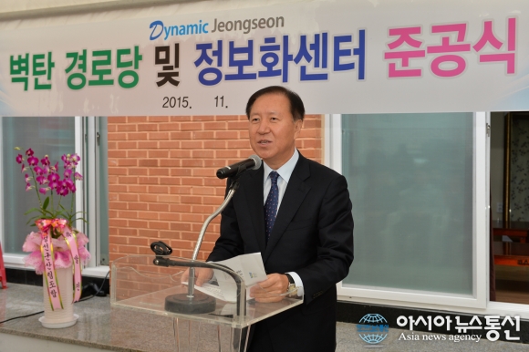 전정환 정선군수가 벽탄경로당·정보화센터 준공식 기념사 모습.(사진제공=정선군청) 강원 정선군은 13일 정선읍 용탄 2리에서 전정환 정선군수 및 기관단체장, 마을주민 등 130여명이 참석한 가운데 벽탄경로당·정보화센터 준공식을 가졌다. ... 2015-11-13