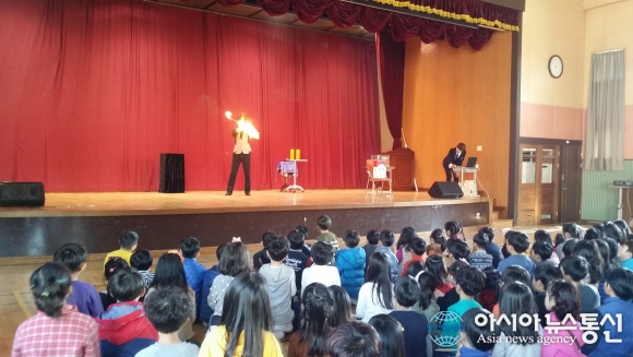 충남 아산시 신창초등학교는 지난 12일 학성관에서 전교생을 대상으로 ‘흡연예방 마술공연’ 관람 시간을 가졌다.(사진제공=아산교육지원청) 충남 아산시 신창초등학교(교장 박종대)는 지난 12일 학성관에서 전교생을 대상으로 ‘흡연예방 마... 2015-11-13