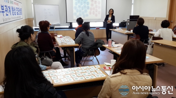 경남 창원시 여성회관 창원관에서 시행한 ‘부부관계 향상 집단상담’ 운영 모습.(사진제공=창원시청) 경남 창원시가 지난달 21일부터 11월11일까지 총 4회에 걸쳐 20명을 대상으로 여성회관 창원관에서 시행한 ‘부부관계 향상 집단상담’... 2015-11-13