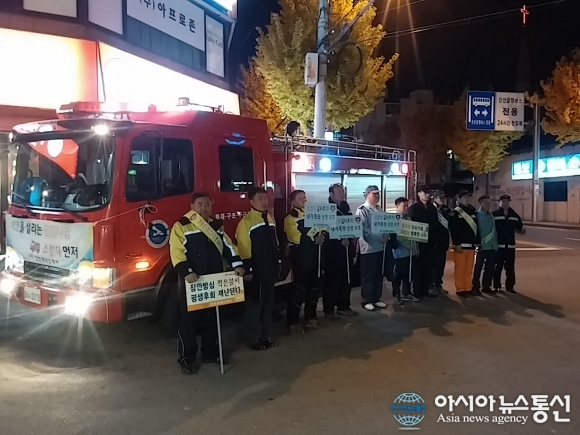 12일 인천계양소방서는 겨울철 화재 대비 재난현장에서 신속하고 효율적인 화재 대응을 위해 출동장애지역 및 상습 정체구간에 대해 불법주차 단속 및 가두 캠페인을 진행하고 있다.(사진제공=인천계양소방서) 인천계양소방서는 겨울철 화재 대비 재난... 2015-11-13