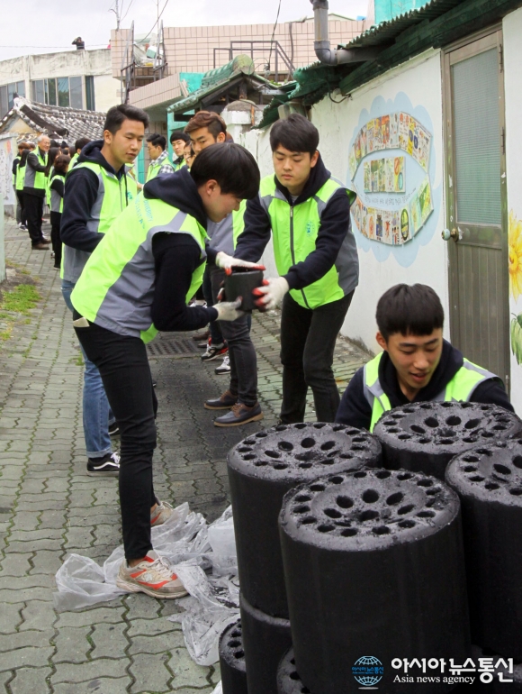 12일 계명대 학생들이 달서구 지역 가정에 연탄을 배달하고 있다.(사진제공=계명대) 계명대는 12일 성서캠퍼스 아담스채플에서 저소득 소외계층을 돕기 위한 '사랑의 김장.연탄 나누기' 행사를 가졌다. 이번 행사는 (사)계명1%사랑나누기, (사)... 2015-11-13