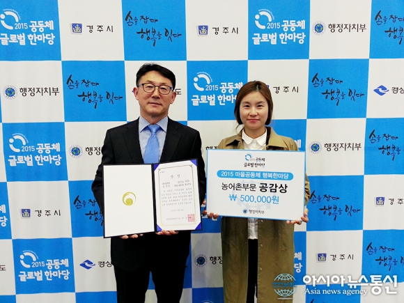 10일 경남 거창군이 경주 화백컨벤션센터에서 열린 ‘2015 공동체 글로벌 한마당’ 행사에서 창조거리 희망마을 조성 사업으로 ‘공감상’ 수상 장면.(사진제공-거창군청) 경남 거창군(군수권한대행 장민철)은 지난 10일 경주 화백컨벤션센... 2015-11-13