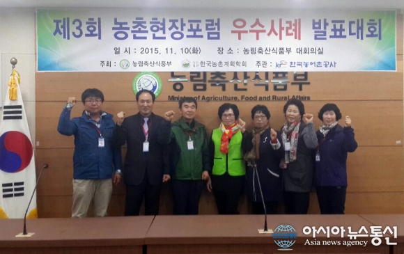 10일 경남 거창군 남상면 대현마을이 농림축산식품부가 개최한 ‘농촌현장포럼 우수사례 발표대회’에서 ‘우수상’을 수상하고 기념촬영 장면.(사진제공=거창군청) 경남 거창군(군수권한대행 장민철)은 지난 10일 농림축산식품부가 개최... 2015-11-13