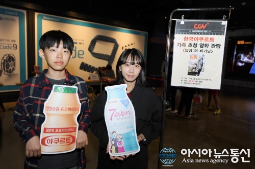자료사진.(사진제공=한국야쿠르트) ▶ 서울, 부산 등 전국 6개 CGV 영화관에서 임직원 및 야쿠르트아줌마 가족 800여 명 초청 영화관람 한국야쿠르트가 기업과 임직원, 야쿠르트아줌마 가족의 소통의 장을 마련하기 위해 가족초청 영화관람 시간을 가... 2015-11-13