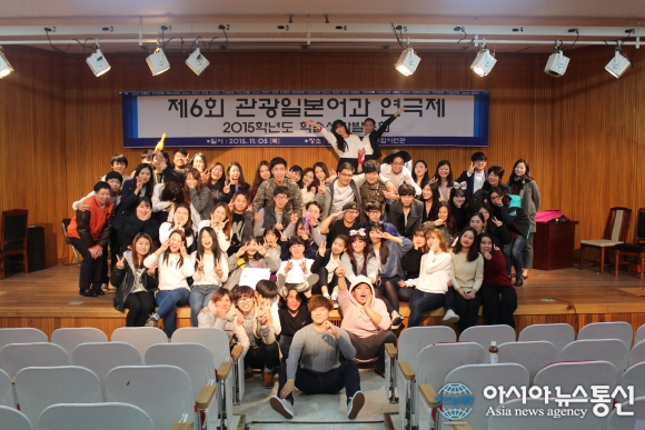 지난 5일 한국관광대학교 학습능력성과발표회에서 관광일본어과 2학년 재학생들이 일본어 원어 연극제를 진행하고 기념촬영을 하고 있다.(사진제공=한국관광대학교) 한국관광대학교(총장 김성이)는 지난 5일 올해 한국관광대학교 학습능력성과발표회... 2015-11-12