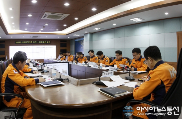 12일 인천소방본부는 5층 회의실에서 본부 과장 및 각 소방서장이 참석한 가운데 겨울철 소방안전대책의 성공적 추진을 위한 소방지휘관 회의를 진행하고 있다.(사진제공=인천소방본부) 인천소방본부(본부장 정문호)는 12일 5층 회의실에서 본부 과장 및... 2015-11-12
