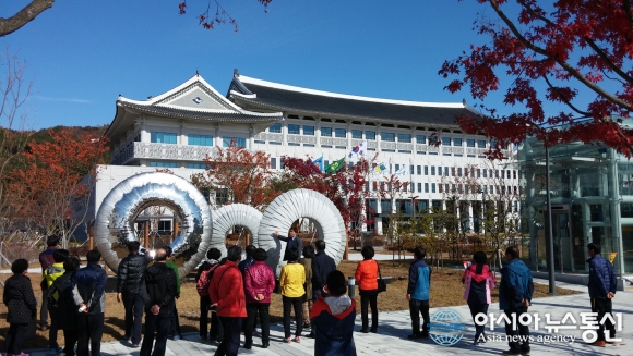 11일 경산시 중방동통장협의회가 경북도청 신청사를 방문해 새롭게 시작될 경북의 미래를 직접 몸으로 체험하고 있다.(사진제공=경산시청) 경북 경산시 중방동통장협의회(회장 정연길)는 11일 경북도청 신청사를 방문, 새롭게 시작될 경북의 미래를 직... 2015-11-12