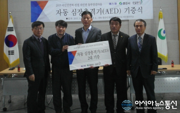 12일 경산시 자인면사무소 2층회의실에서 ㈜에스원에서 후원하고 (사)안실련이 주관하는 자동 심장충격기(AED) 기증식을 갖고 있다.(사진제공=경산시청) 경북 경산시 자인면(면장 김운배)은 12일 자인면사무소 2층회의실에서 ㈜에스원에서 후원하고 (사)... 2015-11-12