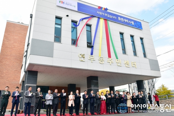 12일 오후 수원시 장안구 연무동 주민센터 개청식이 열렸다.(사진제공=수원시청) 수원시 장안구 연무동 주민센터가 신축이전하고 12일 개청식을 가졌다. 연무동 주민센터 신청사는 장안구 연무동 경수대로 757에 대지면적 1943㎡, 건축 연면적 1705㎡, 지... 2015-11-12