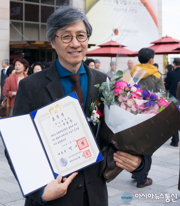 12일 국립국악원 우면당에서 열린 문화예술 유공자 시상식에서 구본창 경일대 사진영상학부 교수가 대통령 표창장을 수상한 후 기념촬영을 하고 있다.(사진제공=경일대) 경일대학교 사진영상학부 구본창 교수(62)가 올해로 47회를 맞는 대한민국문화예... 2015-11-12