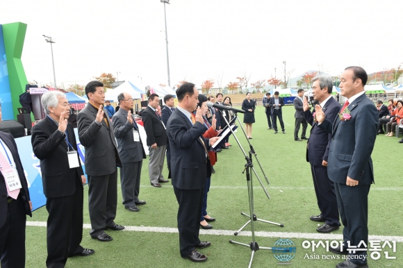 지난 10일 최양식 경주시장과 권영길 경주시의회 의장(사진 오른쪽)이 경주시 이·통장연합회 대표로부터 성실·봉사의무 실천 결의를 받고 있다.(사진제공=경주시청) 경북 경주시 이·통장연합회(회장 김일곤)는 지난 10일 축구공원 제5구... 2015-11-12