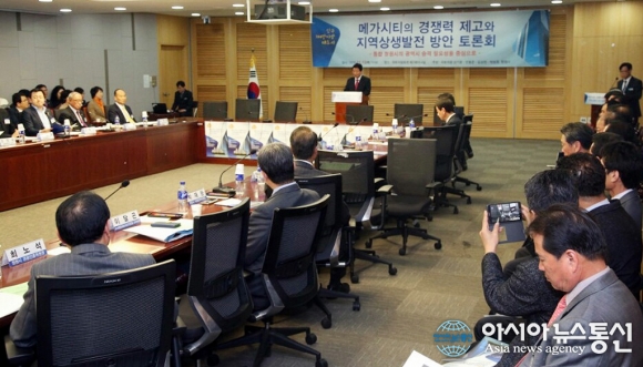 12일 오후 2시 국회의원회관 제2세미나실에서 창원지역 국회의원과 창원시 공동주최로 인구 100만 이상 메가시티의 도시경쟁력 제고와 지역상생발전 방안을 모색하는 ‘정책토론회’가 열리고 있다.(사진제공=창원시청) 인구 100만 이상 메가시티... 2015-11-12