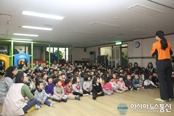 12일 서울 중랑소방서가 관내 위치한 나래유치원 원생 및 교사들을 대상으로 소방안전교육을 실시했다. 이날 안전교육에서는 119신고요령 및 화재시 비상벨설비 사용법, 소화기 사용법 등을 직접 체험해 119정신을 어린이들에게 심어주는 소중한 시간을 가졌다.(사진제... 2015-11-12