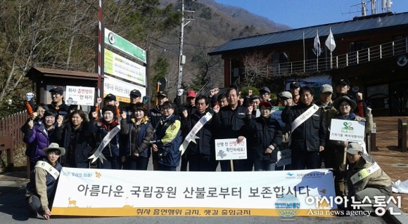 지난해 경남 산청군 시천면 중산리 지리산국립공원 탐방로 입구에서 펼친 ‘산불예방 캠페인’ 장면.(사진제공=산청군청) 경남 산청군은 가을철 산불조심기간을 맞아 오는 14일 오전 10시 시천면 중산리 지리산국립공원 탐방로 입구에서 행락객... 2015-11-12