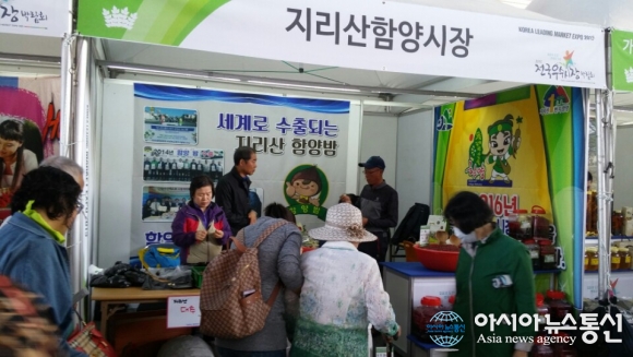 경남 함양군이 전남 여수에서 열린 ‘2015년 전국우수시장박람회’ 참가, 지리산함양시장 홍보부스 운영 모습.(사진제공=함양군청) 지리산 청정 고장에서 생산된 우수한 경남 함양 농∙특산물은 전국우수시장박람회장에서도 인기 만점이었다... 2015-10-27