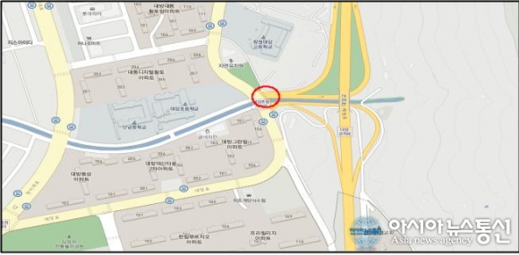 경남 창원시가 시행할 대방IC 입구 도로 선형개량공사 구간 위치도.(사진제공=창원시청) 경남 창원시는 지난해 말 대방IC 도로확장공사 이후 교통량 증가와 병목현상에 따른 교통정체 해소와 주민통행 편의 제공을 위해 기존 교량 확장 등을 포함한 선... 2015-10-27