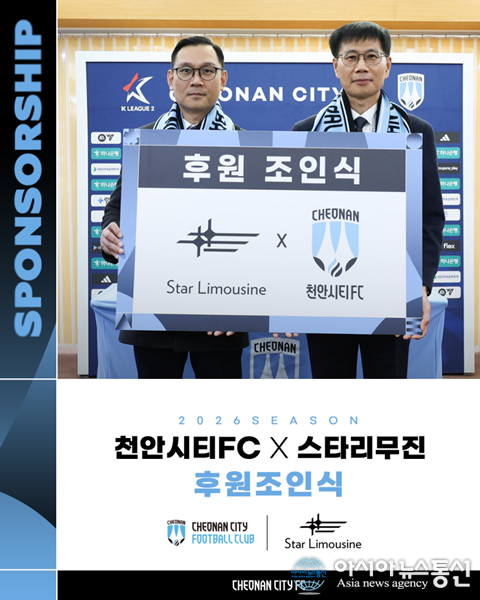 (사진제공=천안시티FC) [아시아뉴스통신=이상진 기자] 천안시민프로축구단(이하 천안시티FC)이 스타리무진과 후원 협약을 체결하며 상생 협력에 나선다. 천안시티FC는 최근 스타리무진과 공식 후원 계약을 체결하고, 다양한 분야에서 상호 협력을 이어가기로 했다. 이번 협약을 통해 스타... 2026-04-22